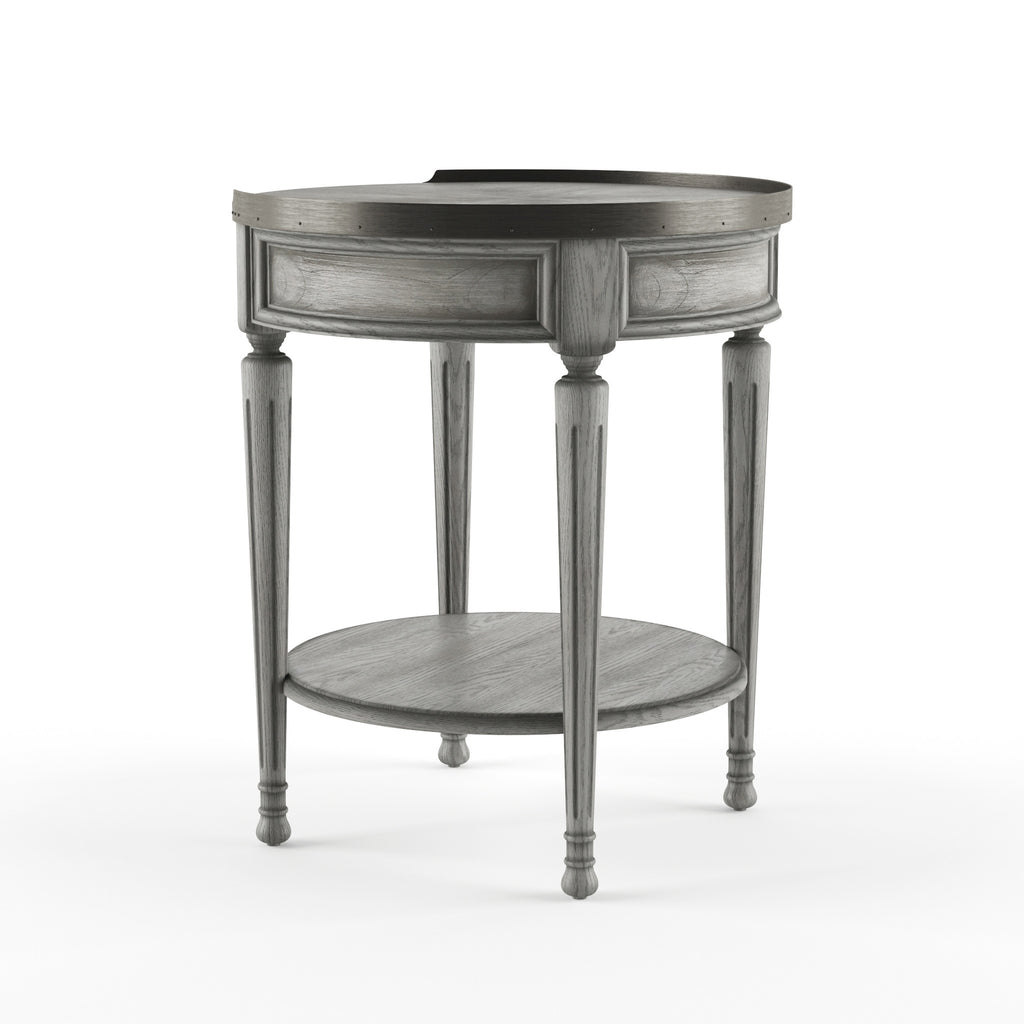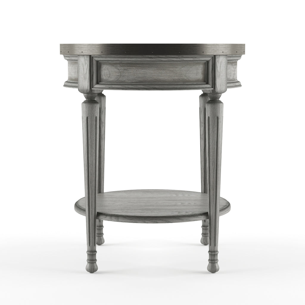 Optimize your space and add some charm to your room with the 26" gray manufactured wood round end table with drawer and shelf. A sleek gray monotone color gives this solid and manufactured wood and manufactured wood table a fresh and updated look. Complete with a purposefully distressed finish, this table has an aged, vintage, and rustic feel. Help to keep your space organized with the included single shelf. Includes a single easy pull out drawer for handy storage of life's little essentials. Side tables are a great way to flank your sofa, use as an accent next to your favorite chair, or can even be used bedside. You can also use it as an entryway table to hold your keys. 26" H x 22" W x 22" D