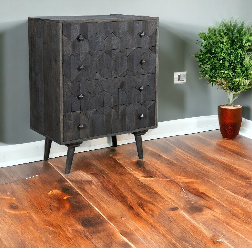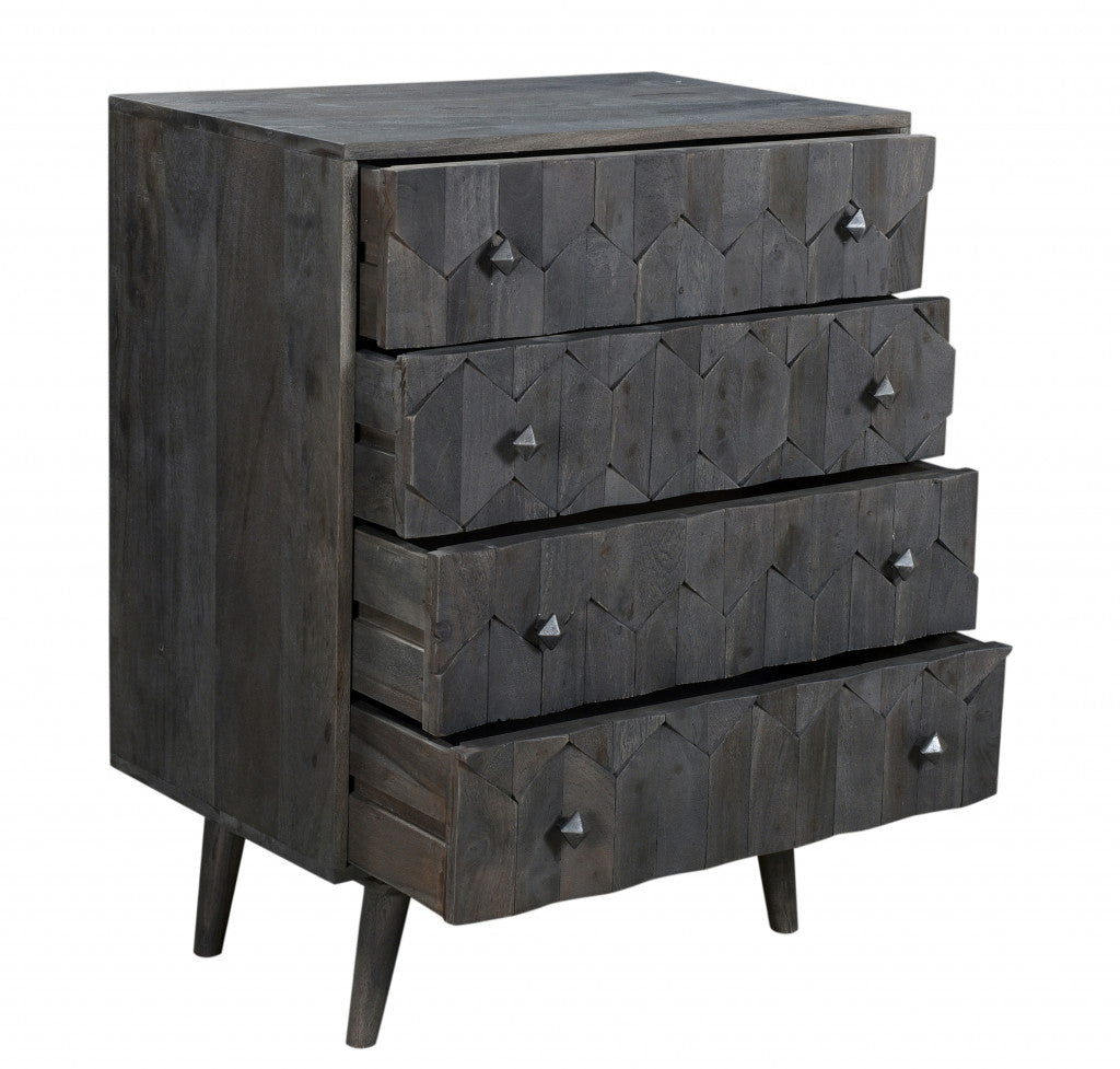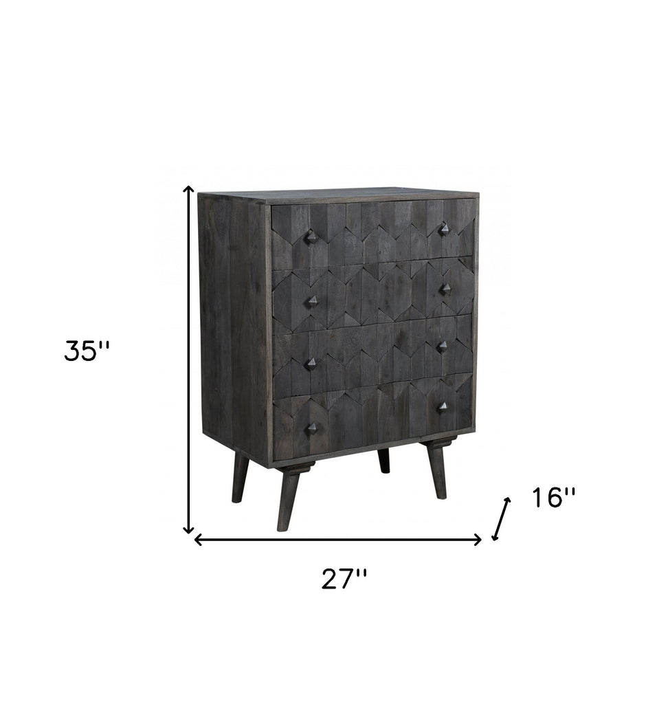 27" Dark Gray Solid Wood Four Drawer Dresser
