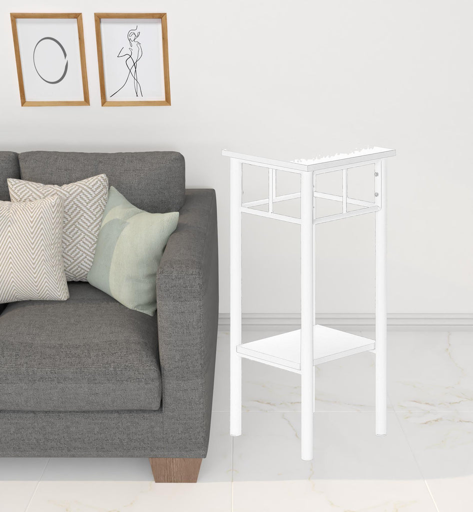 Show off your exquisite taste with this 28" black end table with shelf. A solid black metal frame is finished off with a matching black manufactured wood seat, giving this table a chic monotone look. Help to keep your space organized with the included single shelf. An ideal location for placing your snacks and drinks, and a place to keep your lamp, frames, or other accessories. This versatile table is a great accent for most any room. 28" H x 12" W x 12" D