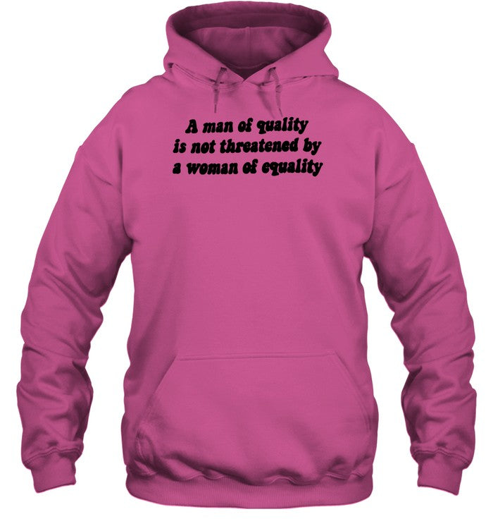 A Man Of Quality Is Not Threatened By A Woman Of Equality Hooded Sweatshirt