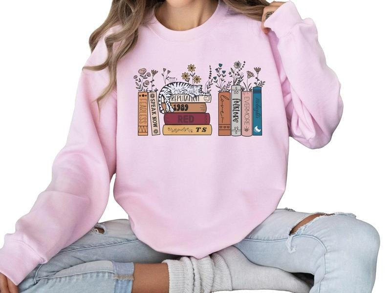 Albums As Books Sweatshirt, Trendy Aesthetic For Book Lovers, Crewneck Shirt