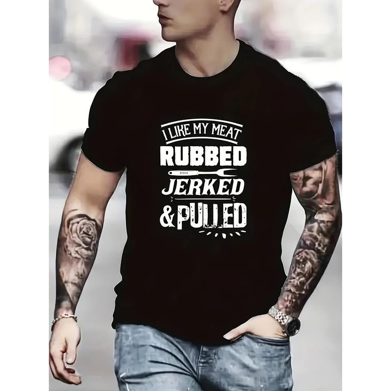 Barbecue 'I Like The Meat' Print T Shirt, Tees For Men, Casual Short Sleeve Tshirt For Summer Spring Fall, Tops As Gifts Made in USA