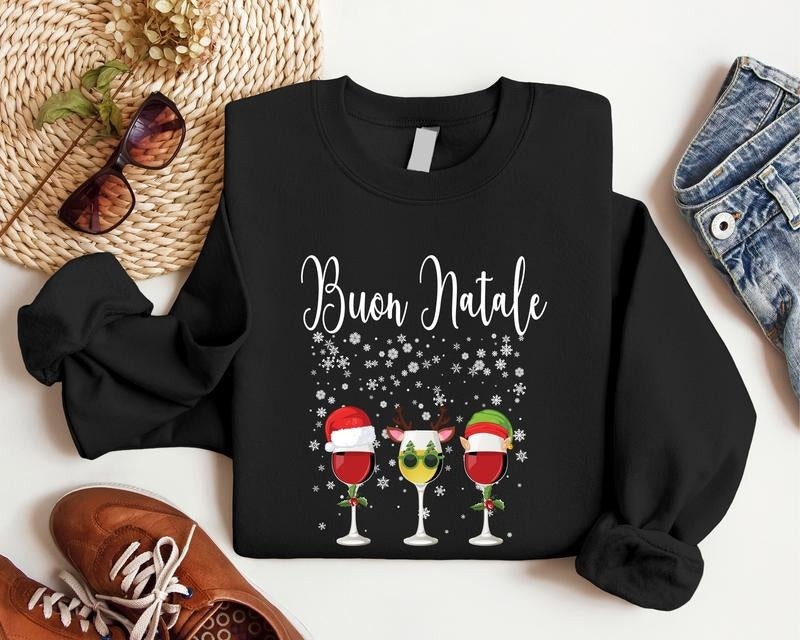 Buon Natale Sweatshirt, Italian Merry Christmas Sweater, Christmas Wine Gift Hoodie, Matching Family Group Holiday Sweatshirt.