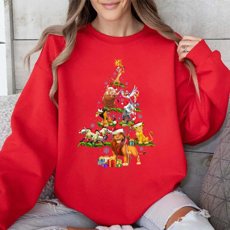 Christmas Tree Sweatshirt, Lion King Christmas Hoodie, Xmas Holiday Tee, King Characters Christmas Tree Shirt, Xmas Party Tee
