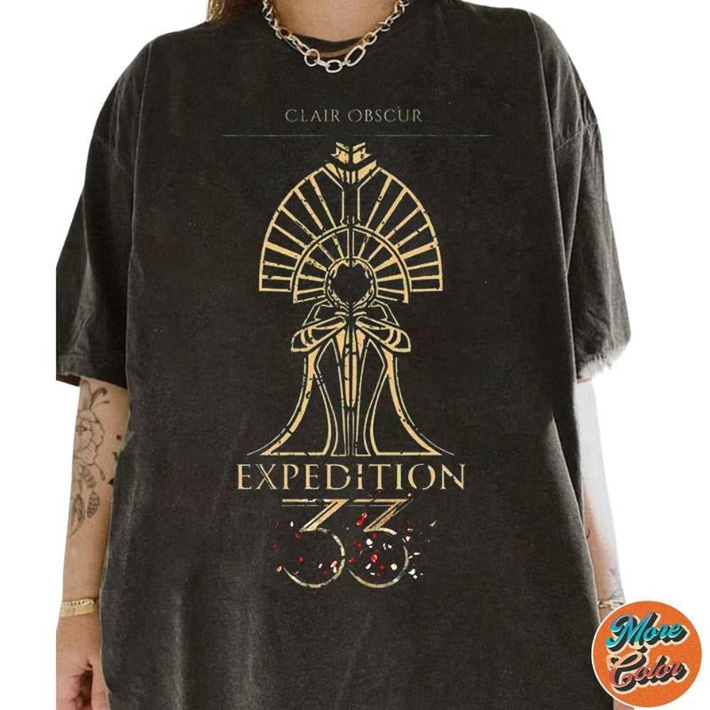 Clair Obscur Expedition 33 Elegant Gold Line Art Gamer Shirt, Cotton Unisex T-shirt, Crew Neck, Size S- 3XL, Menswear Top, Womenswear Top Underwear Streetwear