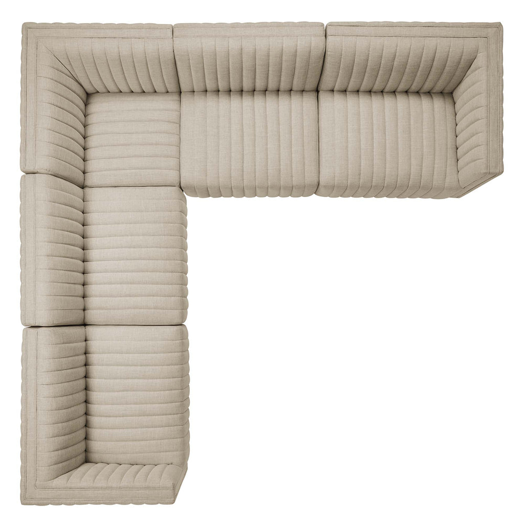 Conjure Channel Tufted Upholstered Fabric 5-Piece L-Shaped Sectional