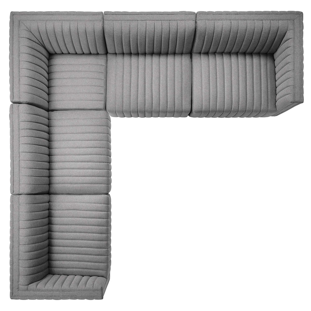 Conjure Channel Tufted Upholstered Fabric 5-Piece L-Shaped Sectional