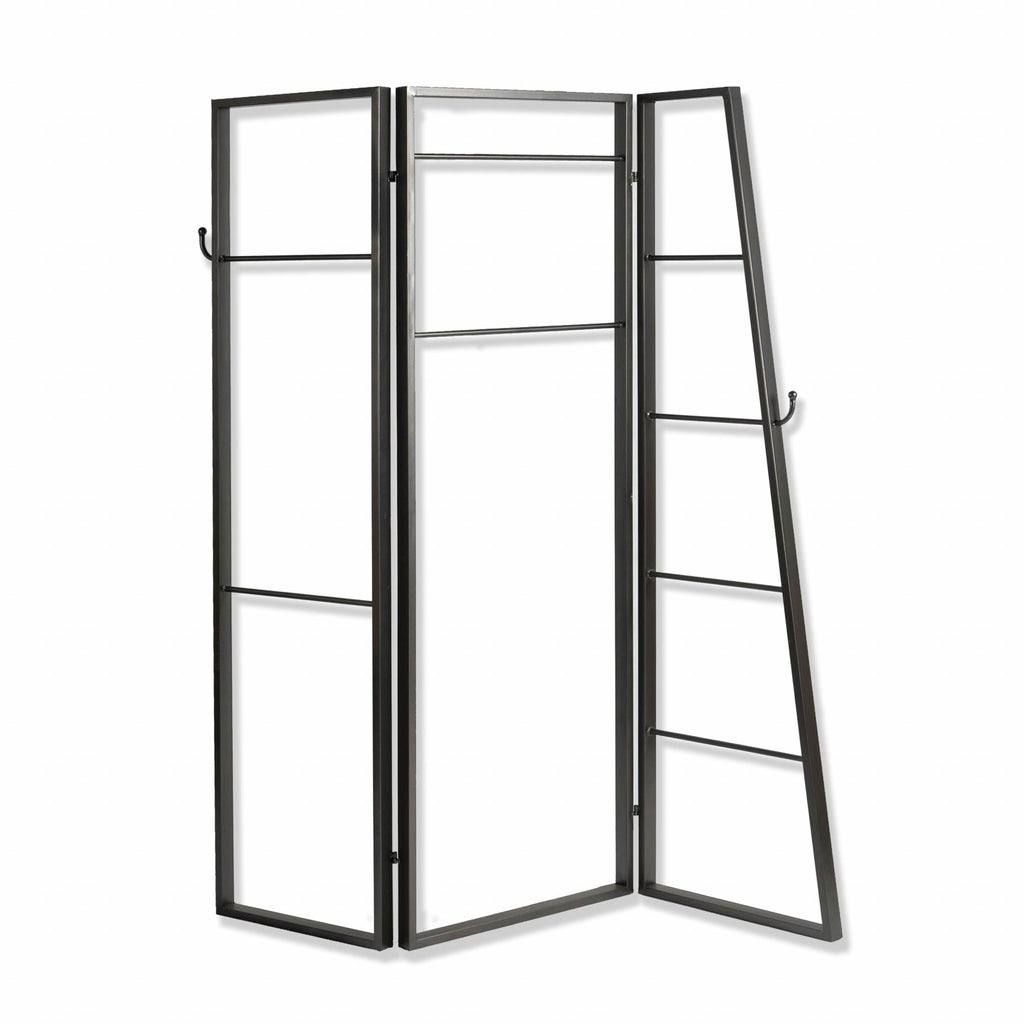 Contemporary Metal Coatrack Three Panel Room Divider Screen