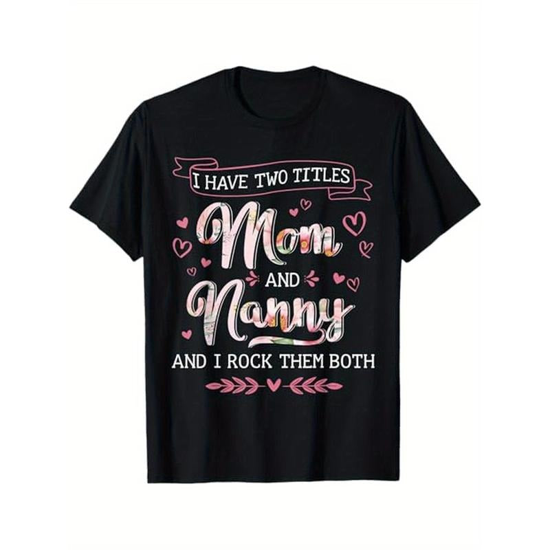 [Cotton Mothers Day T-Shirt] 100% Cotton T-Shirt - Two Titles Mom Nanny Grandma Mothers Day Christmas Birthday - S-XXXL, Black Made in USA