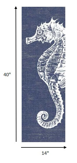 Vintage and decorative, this Distressed Seahorse Wall Décor has a casual yet elegant look. This indigo blue and white piece of art is printed on genuine wood with knots and grains that give it an authentic look and feel. This vintage wall art is a unique addition to any beach house, living space, office, or bedroom. 40" x 14" x 2".
