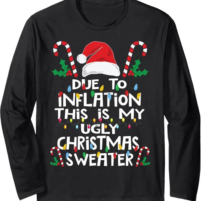 Funny Due to Inflation Ugly Christmas Sweaters For Men Women Long Sleeve T-Shirt