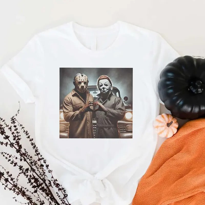 Funny Halloween Shirt, MichealMyer Cute, Jasonvoorhees Heart, Heart Sign Halloween Shirt, Jasonvoor Hees Love MichealMyer Tee