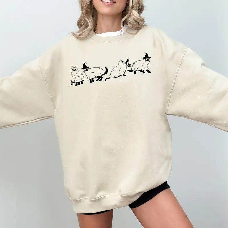 Halloween cat Sweatshirt, Halloween Sweater, Halloween Cat Shirt, Cat Lover Shirt, Black Cat Shirt, Spooky Season