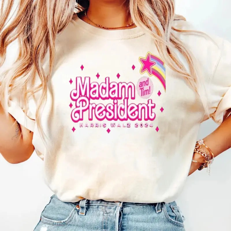 Harris Walz 2024 Shirt, Kamalla Harris Shirt, President Harris Shirt, Harris Barb!E Shirt, 2024 Kamalla Harris Shirt,Let's Finish The Job Shirt Harris, Unisex Short Sleeve Tee Shirt, Casual Clothing
