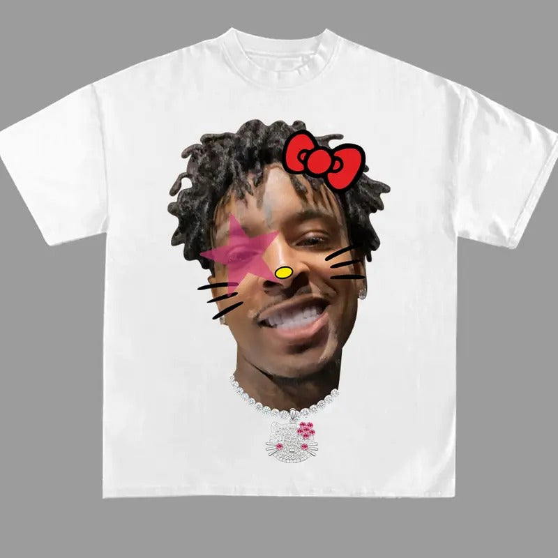 Hello Savage Kitty Pink Super Star Rap Tee Crewneck Streetwear