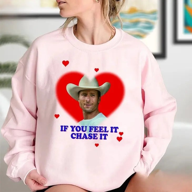 If you feel it chase it Glen Powell as Tyler Owens Twisters Sweatshirt, Gift For Fan, Gift For Her, Gift For Him