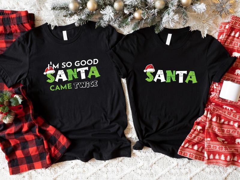I'm So Good Santa Came Twice T-Shirt, Cute Couples Christmas Party Gift Tee, Matching Couples X-mas Tee, Holiday Season Short Sleeve.