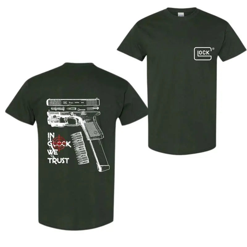 In Glock We Trust Tshirt-Sweatshirt-Hoodie, Double Side T-Shirt, All Sizes For Men and Women