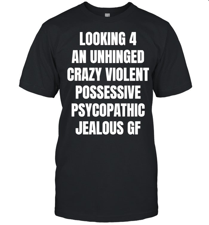 Looking 4 An Unhinged Crazy Violent Possessive Psychopathic Jealous Gf shirt