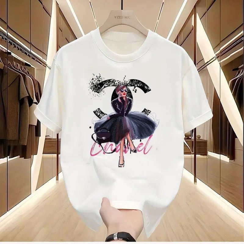 Luxury Black Girl CC Cotton High Quality Print Short Sleeve Couple Tees for Men & Women Summer Outfit, Gift for Him or Her, Casual T-Shirt Anniversary Elegance Womenswear Soft