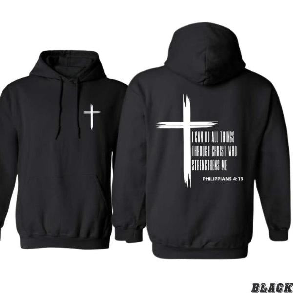 Men's Cross & Letter Print Drop Shoulder Hoodie, Trendy Graphic Pullover, Casual Streetwear Hoodie for Men
