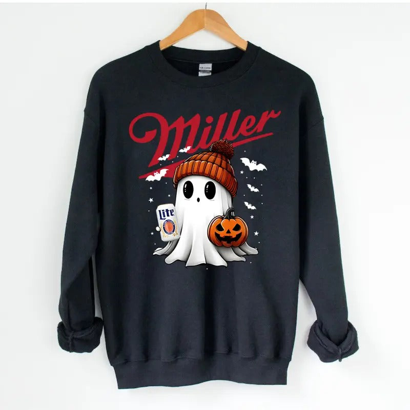 Miler Lite Ghost Cute Pumpkin Halloween Sweatshirt - Unisex Crewneck Sweatshirt for Men and Women - Pullover, Womenswear Fabric Hoodie