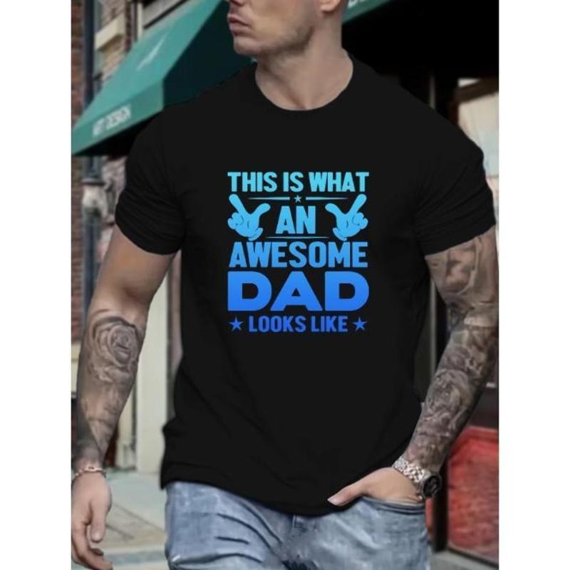 Plus Size Men's Awesome Dad Letter Print Short Sleeve T-Shirts, Comfy Casual Elastic Crew Neck Tops For Men's Outdoor Activities Made in USA