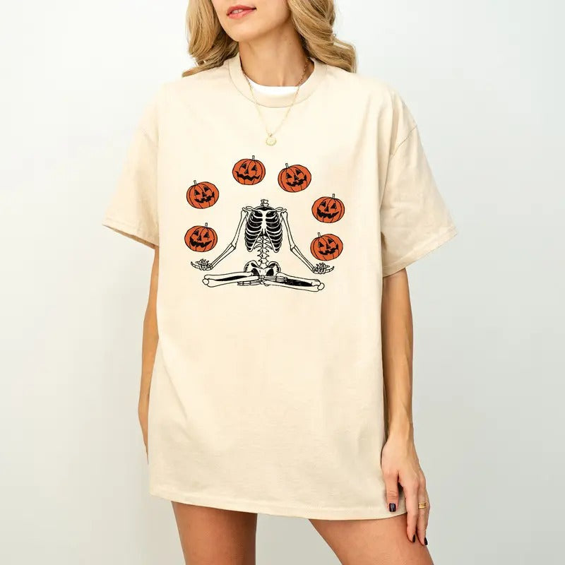 Skeleton Pumpkin Face Halloween T-Shirt, Halloween Sweatshirt, Pumpkin Fall Autumn Sweater, Spooky Season Shirt, Skeleton Halloween Thanksgiving Shirt