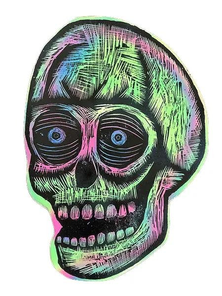 Skull Woodcut Printed on Painted and Shaped Wooden Panels Decor Decoration Wall Art