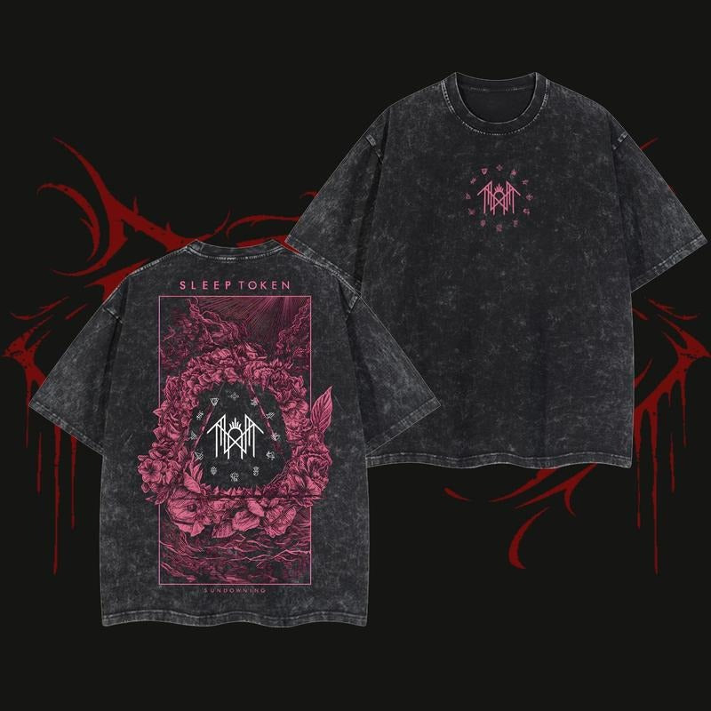 Sleep T Rose Red Style Unisex Oversize Washed Heavyweight Cotton T-shirt, Gift For Rock Music Lovers, Gift For Fan