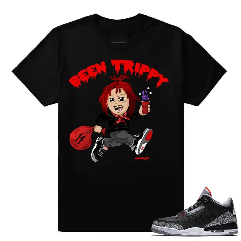 Sneaker T Shirts Jordan 3 Black Cement Sneaker tees Trippy Red Been Trippy Clothing Collar
