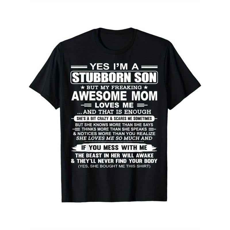 [Soft Mom Love Tee] Breathable & Soft I'm A Stubborn Son But My Freaking Awesome Mom Love Me T-Shirt - Casual Everyday Wear - Effortless Style Made in USA