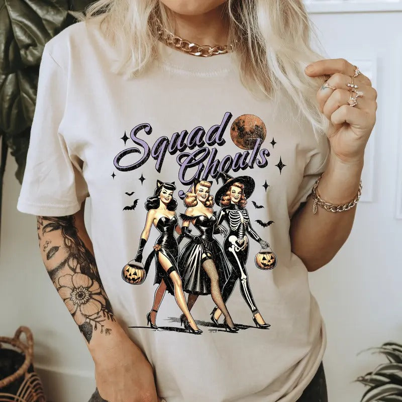 Squad Ghoul Halloween Shirt. Distressed Pretty Witch Girls T-shirt. Casual Everyday Softstyle Halloween Unisex T-Shirt.
