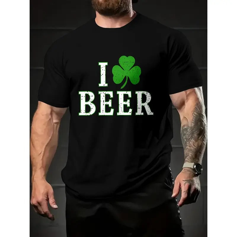 St. Patrick'S Day Men'S Humorous Pattern St. Patrick'S Day Party Printed T-shirt Short Sleeve Round Neck T-shirt, Casual Lightweight Comfortable Short Sleeve Top, Summer Outdoor Random Printed Design Made in USA