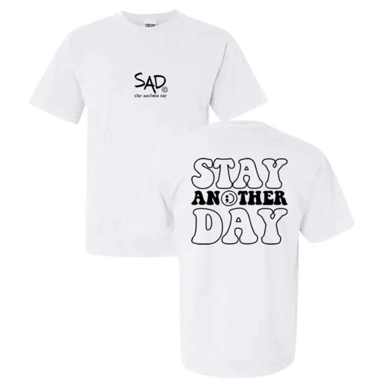 Stay Another Day Bubble Screen T-shirt, Mental Health Awareness Clothing, Unisex Tshirt, Casual Classic Cotton Tshirt