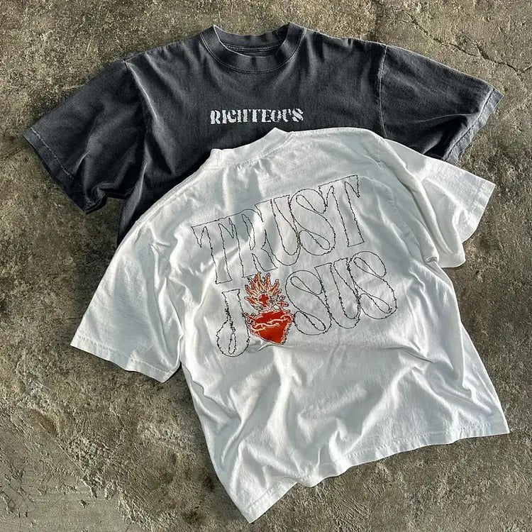 Vintage Trust Jesus Graphics Printed Cotton T-Shirt graphic tee Crewneck Menswear