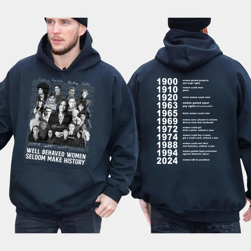 Well-behaved Women Seldom Make History T-shirt Sweatshirt Hoodie, Harris Walz 2024 shirt Womenswear, Gift for Men and Women, Full Size