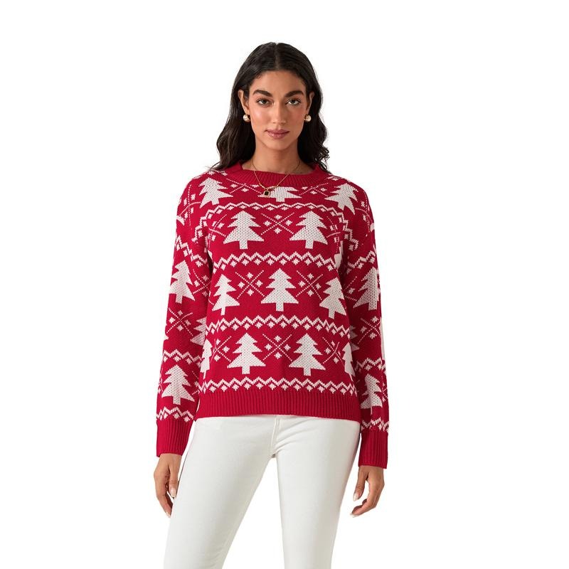 Women's Christmas Loose Sweaters Christmas Tree Print Long Sleeve Round Neck Knitwear Pullovers