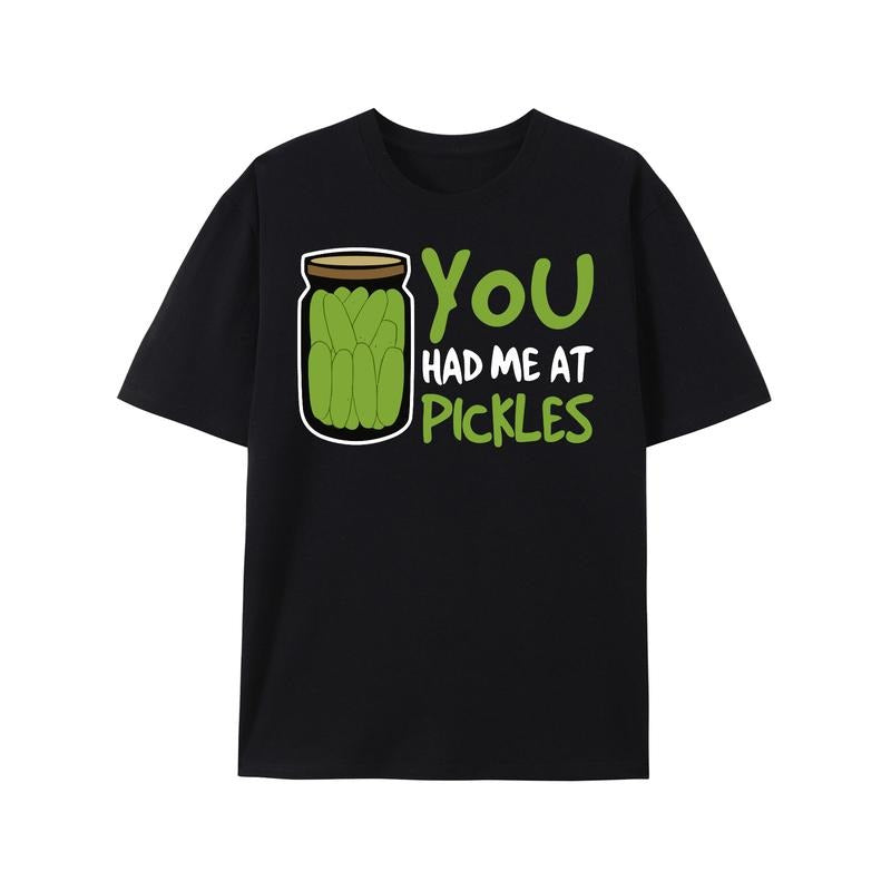 You Had Me At Pickles Print T Shirt, Tees For Men, Casual Short Sleeve T-shirt For Summer Made in USA